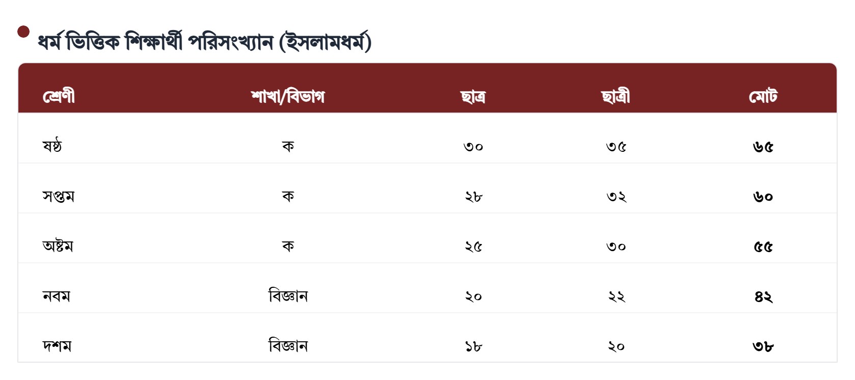বিস্তারিত শিক্ষার্থী পরিসংখ্যান ২০২৫